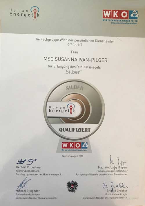 - Diplomierter QiGong-Lehrer der Österreichischen QiGong-Gesellschaft – Dr. Gerhard Wenzel / Goldegg